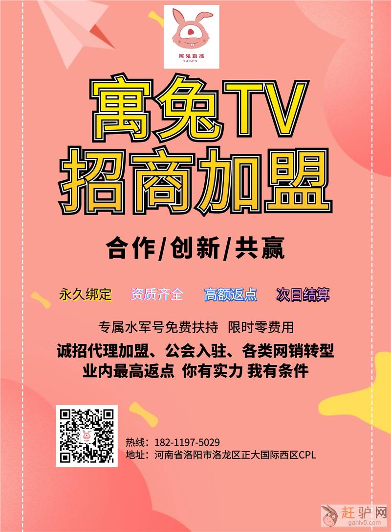 寓兔直播平台官方诚招代理 绿色直播平台 充值结算模式 返点高结算快 更有免费专属水军号扶持www.ganlv5.com赶驴网